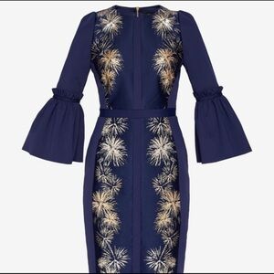 Ted Baker Rare Gold Fireworks Graohic Metallic Flute Flare Sleeve Dress