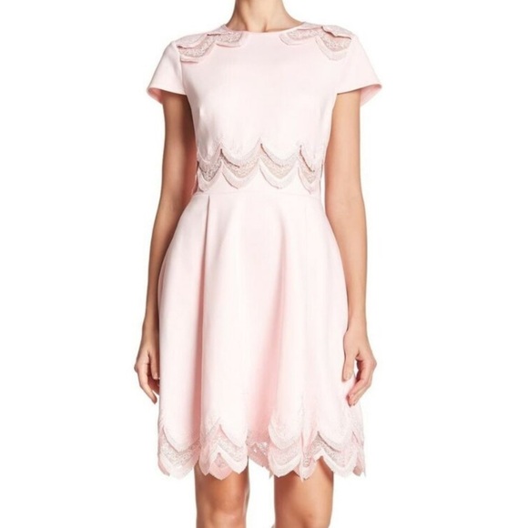 Ted Baker Rehanna Embroidered Cap Sleeve Skater Dress Pink Ted's Size 4 US 10