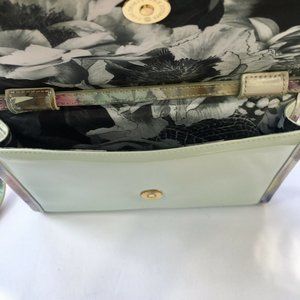 Can be used as a clutch or hung on the shoulder using the inside strap during a night out. Patent Finish Floral Lining Choice of Strap Sugar Sweet Floral Design. Magnetic closure
