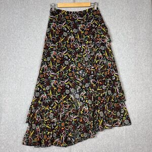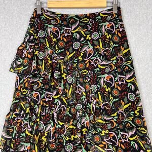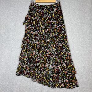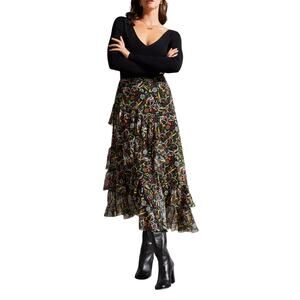 Ted Baker Womens Size 1 Rianah Tiered Ruffled Asymmetric Midi Skirt Floral