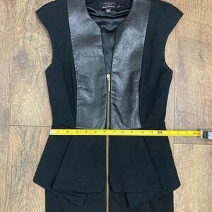 Ted Baker Rieta Black Leather Peplum Cap Sleeves Midi Dress Padded Shoulder US 4