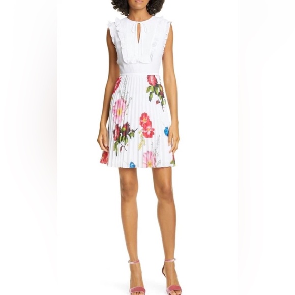 Ted Baker Romanna White Floral Pleat Dress Sz 1/US 4