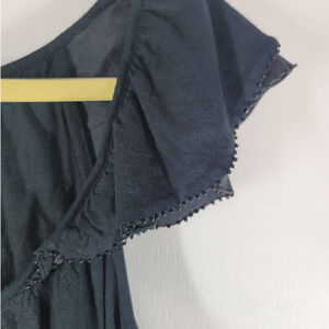 Ted Baker Ruffle Beaded Edge Flutter Sleeve Blouse Size 8 Short Sleeve Black