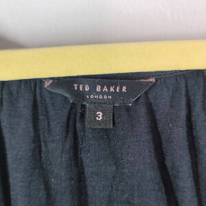 Ted Baker Ruffle Beaded Edge Flutter Sleeve Blouse Size 3 Short Sleeve Black
