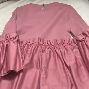 New without tags Ted Baker pink ruffled top. The bell sleeves and bottom portion of the top is made of cotton.