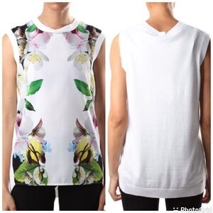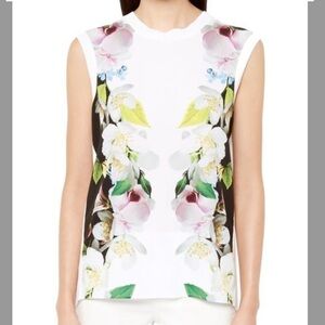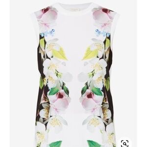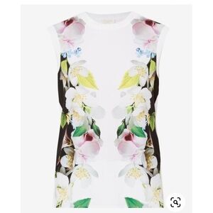 Sleeveless jumper by Ted Baker, featuring a floral print to the front, a plain back and a round neckline.