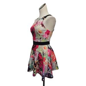 Ted Baker Samra Womens XS Colorful Floral Fit & Flare Skater Buckle Straps Dress