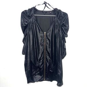 Ted Baker Semi Sheer Puff Sleeve Zip Up Blouse - Black 2/US 6. This item is pre-owned in excellent condition.