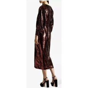 Ted Baker Sequins Burgundy Wine Emmalee Surplice Midi Dress US 6
