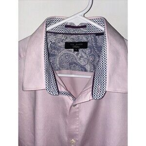 Ted Baker Shirt Mens 3 Small Pink White Geometric Button Down Cotton Flip Cuff