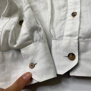 TED BAKER SHIRT MENS 3 WHITE BLUE LINEN BLEND FLIP CUFF TAB SLEEVE BUTTON UP