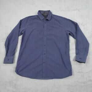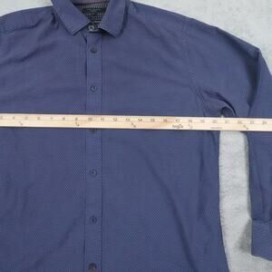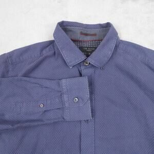 Ted Baker Shirt Mens Large Blue Patterned Button Up Long Sleeve Cotton Dress