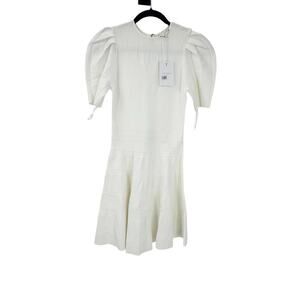 Ted Baker Short Puffed Sleeve Engineered Skirt Dress Crewneck Ivory Size 1 NWT
