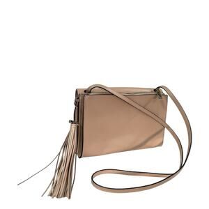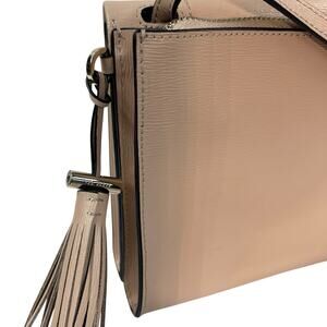 Ted Baker Shoulder Bag Crossbody Pink Leather Flap Over Designer Fringe Charm