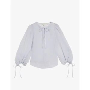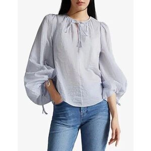 Elevate your wardrobe with this stunning Ted Baker womens blouse, crafted in a soft light blue fabric with balloon sleeves and tie cuffs. Featuring a feminine bow tie neckline and relaxed silhouette, this blouse embodies modern elegance with a romantic twist.