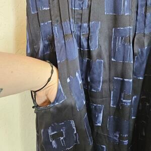 Ted Baker Silk V Neck Sheath Dress Black Blue Print Womens 4