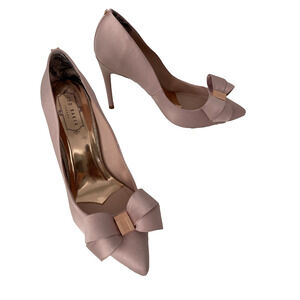 Ted Baker Skalett Pump Pink Pointed Toe Slim Heel Satin Bow Blush Light 40.5