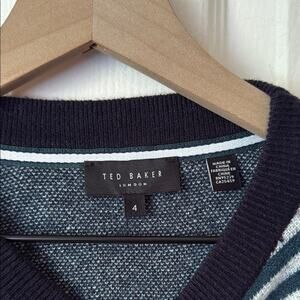 Ted Baker Skylark Check Pattern Crewneck Sweater Navy size 4