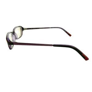 These Ted Baker glasses frames offer a stylish and sophisticated look in a unique black and purple color combination. The rectangular shape provides a modern and professional appearance, making them suitable for various settings.