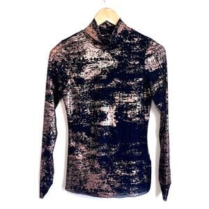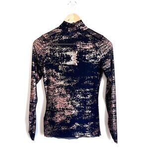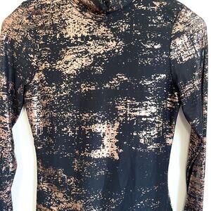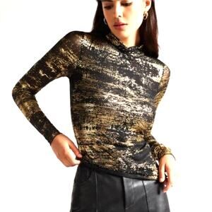 Ted Baker Sofiy Foil Print High Neck Mesh Sheer Women's Black Gold Whimsigoth Indie Grunge Fitted Stretchy Shirt