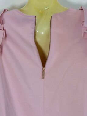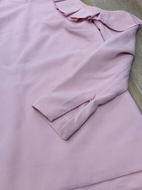 Smooth woven fabric with clean neckline and pleated ruffle details