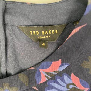 Ted Baker Stephanie Floral Print Blouse Size 4 Keyhole Detail Sheer Long Sleeve
