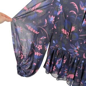 Ted Baker Stephanie Purple Floral Balloon Sleeve Blouse Preppy Womens 1 US 4 Sm