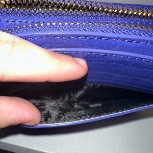 Ted Baker Stina Double Zip Croc Effect Mini Camera Bag in Purple. In good condition, with some signs of wear. There is wear around the stitching on the back (picture) Hardware and zippers are in good operable condition Please review photos Length 7” Height 4 1/2” Width 2”