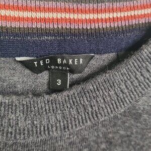 Ted Baker Sweater Men Size 3 (Medium) Gray Wool Crewneck Pullover Lightweight