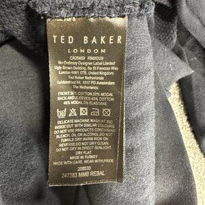 Ted Baker Sweater Mens US 46 Ted 7 Blue Textured Cotton 1/4 Zip Rib Cuffs Pullov