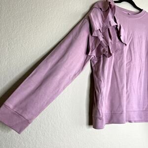 Ted Baker London Sweater Pullover Women Size 5 Sweatshirt Modal Blend Made in Portugal Dusty Rose Pink Ruffle Frill Detail Long Sleeve Crew Neck Elegant Designer Luxury Classic Soft Warm Winter Fall Comfortable Comfy Cozy Preppy Light Academia