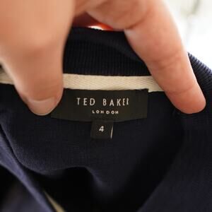 Ted Baker Sweatshirt Size 4 Blue Cotton Full Zip Long Sleeve Stretch Logo Men's