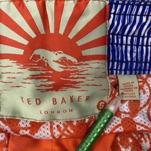 Ted Baker Blue Houndstooth Swim Trunks Shorts size 6/XXL with red The World's Your Lobster Liner