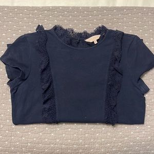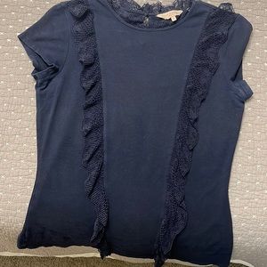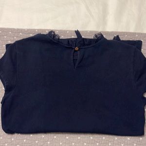 Ted Baker T- Shirt. Size 2 previously owned . Good condition. Lace trimmings. Navy blue