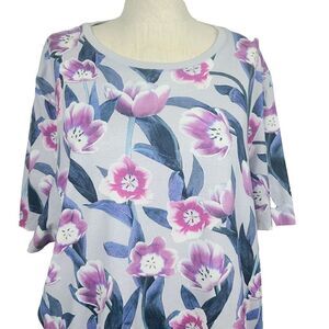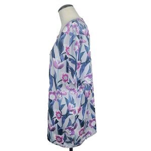 Ted Baker T-Shirt 6 (14) Gray Purple Cotton Knit Floral Boxy Pullover Top