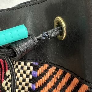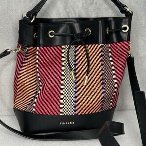 Ted Baker Taliiaa Multicolor Woven Boho Bucket Shoulder Bag Leather Trim