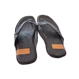Ted Baker Thong Sandals Size 9 Black Leather Paisley Embossed Sole Slip On Comfy
