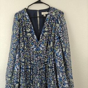 Ted Baker Tiered Swing Mini Dress Butterfly Print Long Sleeve in Blue Size 8