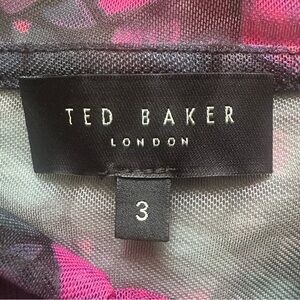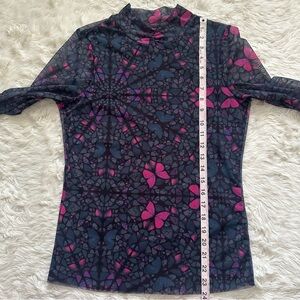 Ted Baker Top Kamill Printed Mesh Long Sleeve Mock Neck Butterfly Kaleidoscope Black Pink Sz 8