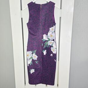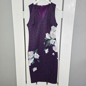 Ted Baker Toriiy Leopard Floral Bodycon Midi Purple Dress Size 2 Medium US 10