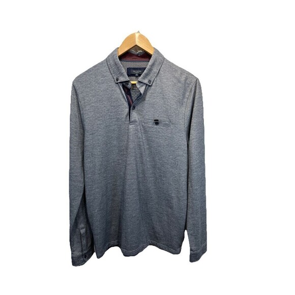 Ted Baker TreverSlim Fit Long Sleeve Oxford Polo shirt Size 5 XL flip cuff