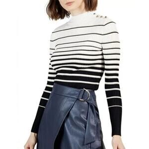 Ted Baker Wanada Stripe Mock Neck Sweater White / Black Size 10