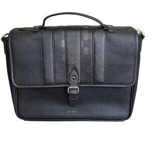 Ted Baker Black Webbing Document Bag Detachable Shoulder Strap Black nylon interior Padded Computer compartment Grab Handle Gunmetal hardware Slip in back for carrying on carry-on luggage slip pockets Measures 13.5 high, 16 inches wide Brand new, in packing Guaranteed authentic