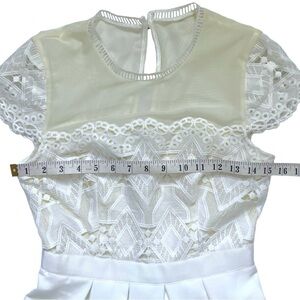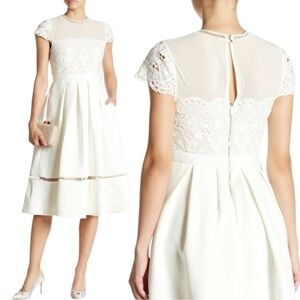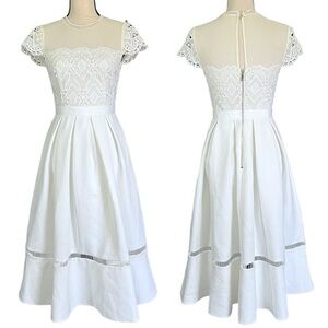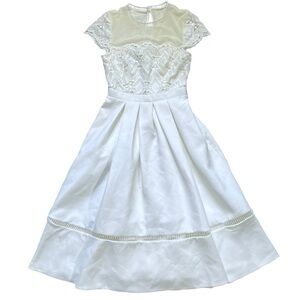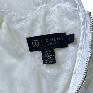 Ted Baker White Frizay Lace Bodice Pleated Tea Length Dress sz 2