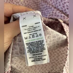Excellent condition. Button down front, short sleeve. White base with mini stripe design in maroon and navy.