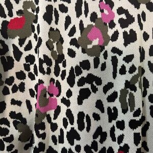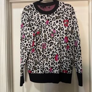 Colored spots act as sweet blooms within the wild leopard pattern of this cute fitted crewneck sweater with contrast edges. • ribbed neckline, cuffs, and hem • stretchy knit fabric; pullover style • 63% Viscose, 37% Polyamide 19” PTP 25” Length Excellent Condition - MSRP $259 —out of stock online - RARE Find!