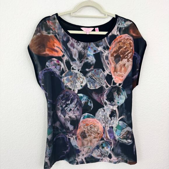 Ted Baker Womens Ayrina Top Blouse Size 8 Glistening Gem Jewel Mix Media Black
