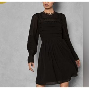 Ted Baker Womens Black Appliqué Lace Arrebel Embroidered Chiffon Dress Size 2