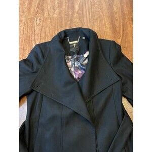 Ted Baker Women's Black Paria Wool Cashmere Short Wrap Coat Belted Overcoat Sz 4