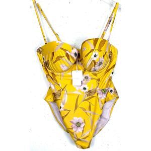Ted Baker Womens Cabana Balconette Swimsuit Yellow Floral Removable Straps 12